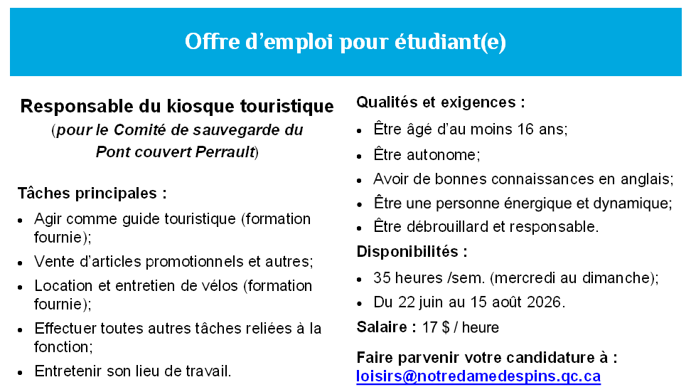 Offre d'emploi étudiant - Responsable du kiosque tournistique